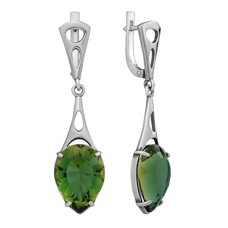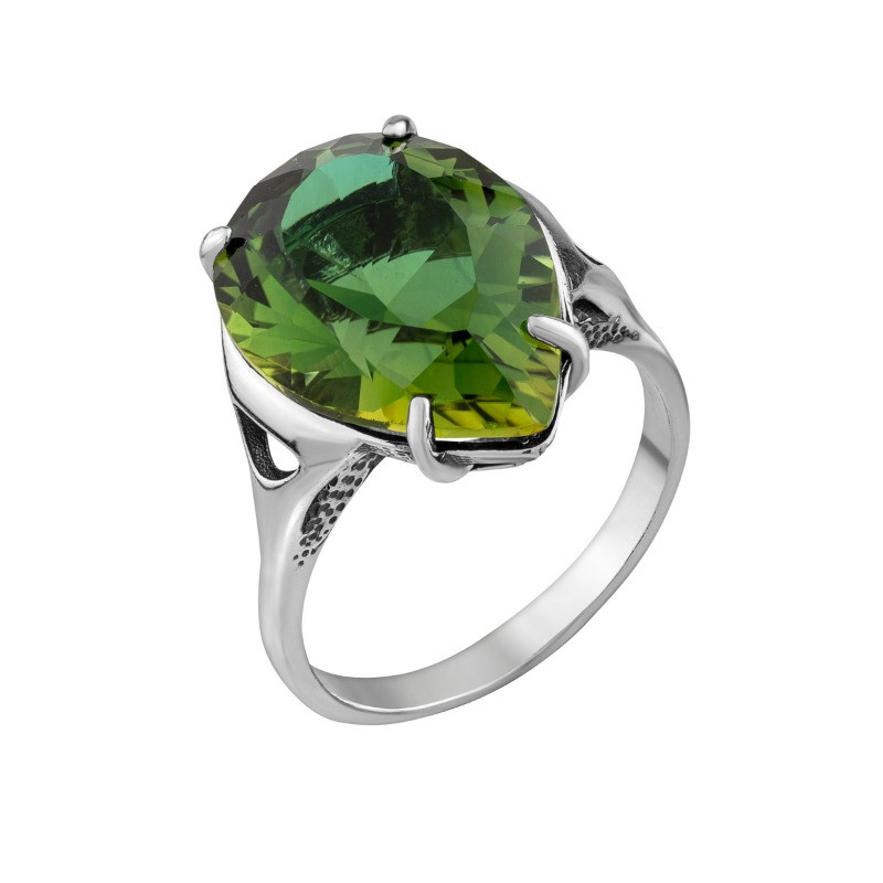 В центре внимания – великолепный зеленый прозрачный кварц собственной огранки, чей глубокий, насыщенный оттенок напоминает о свежести морского бриза и сочной зелени лимонных рощ Сорренто. Камень, словно вобравший в себя всю красоту природы, притягивает взгляд своей чистотой и сиянием.