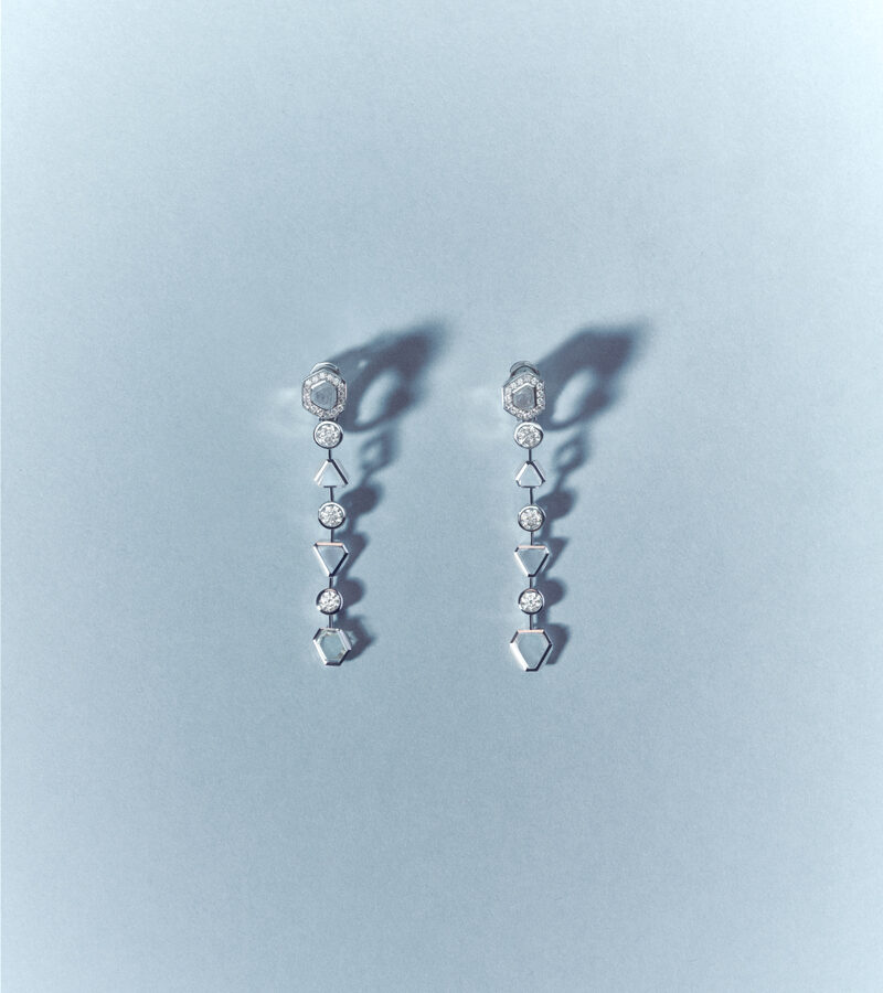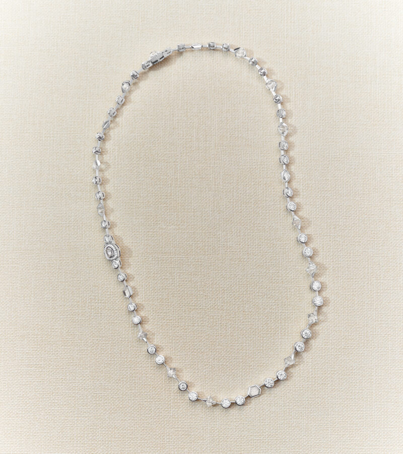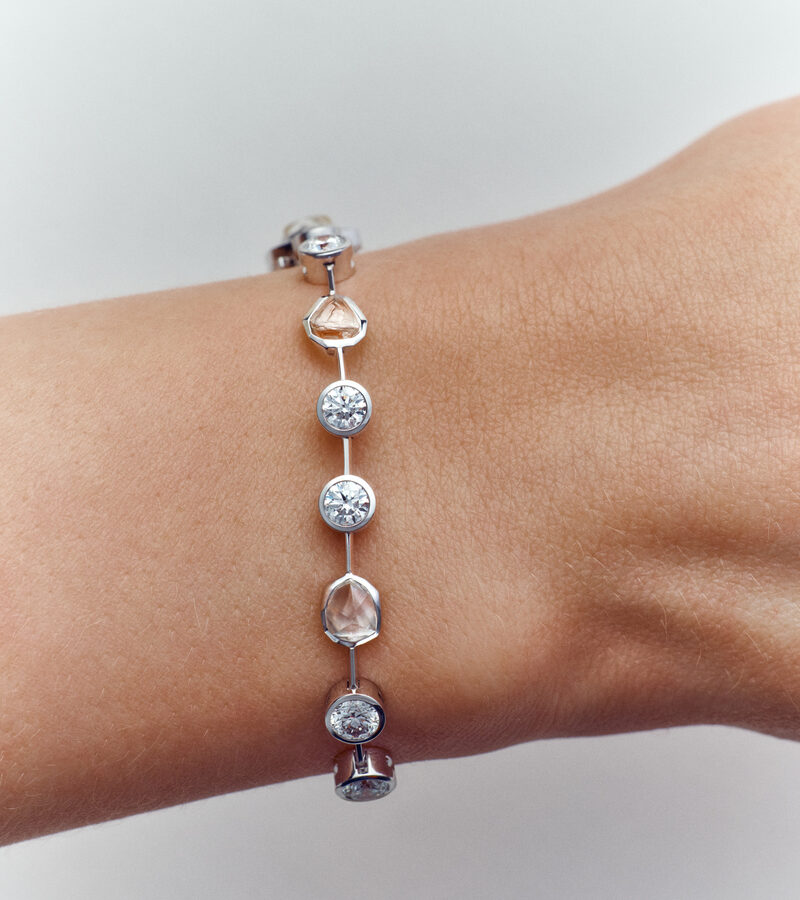 Внутри коллекции контраст между необработанными и отполированными алмазами создает завораживающую двойственность. Необработанные алмазы, найденные в древних руслах рек, хранят в себе тихие следы природного творения.