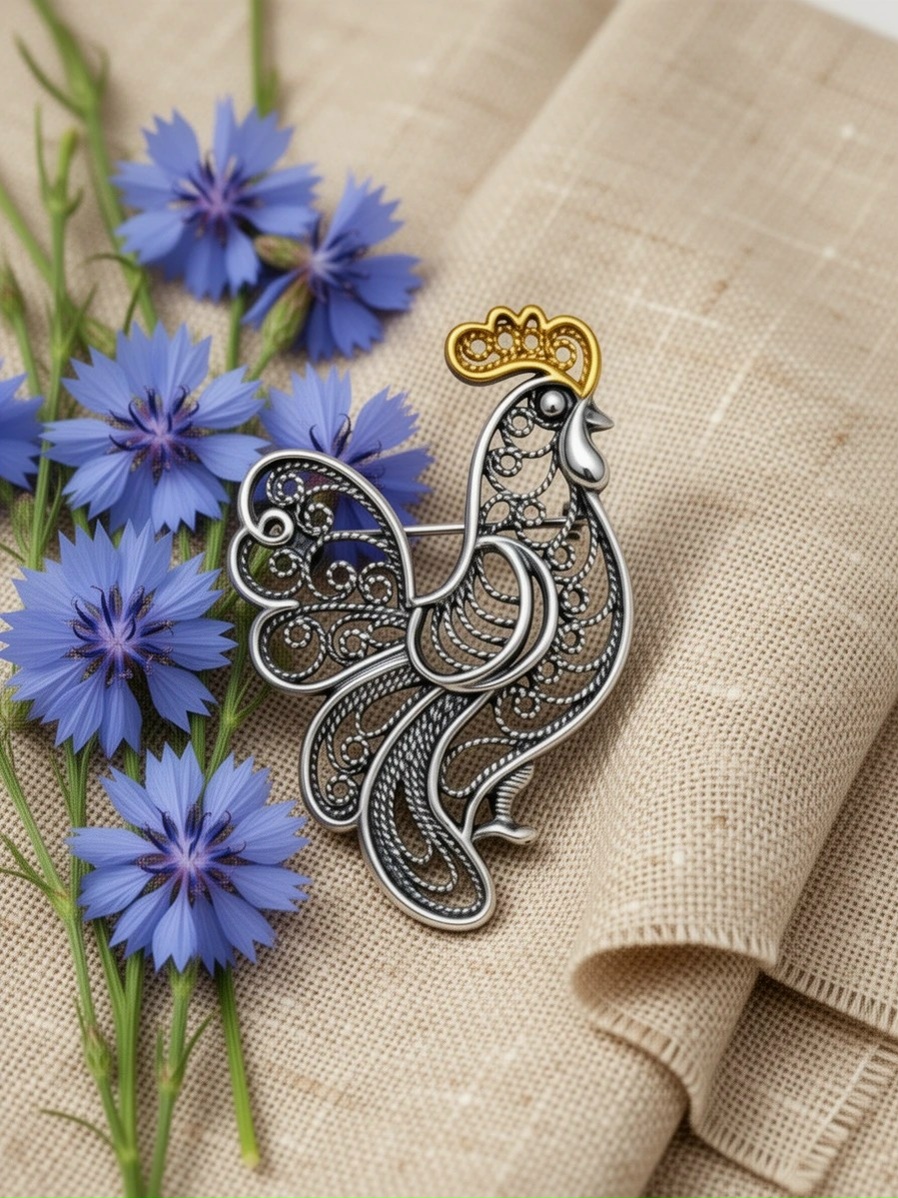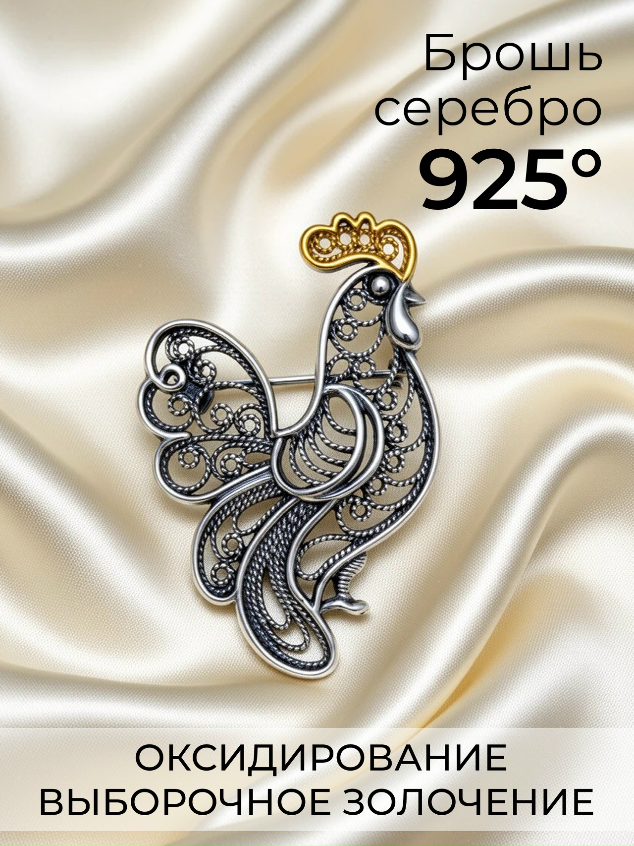 Ювелирный завод «Красная Пресня» представляет эксклюзивную серебряную брошь «Петушок», созданную с любовью и мастерством.