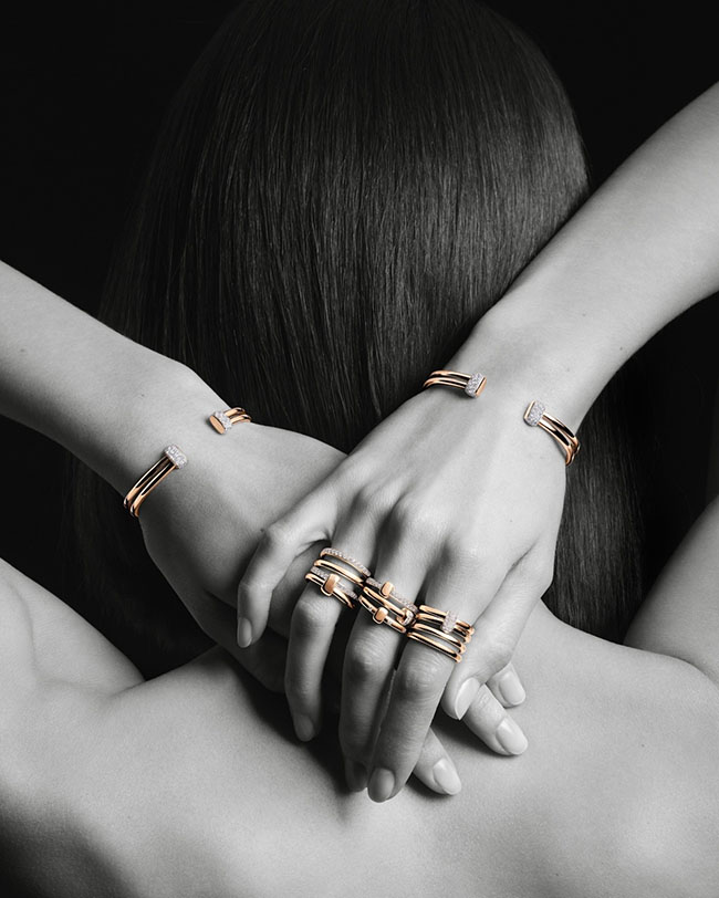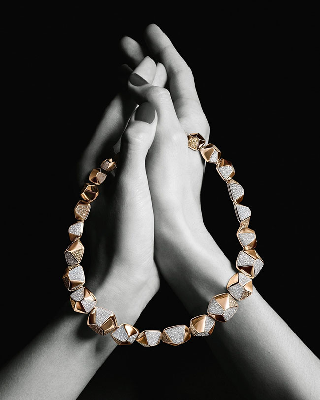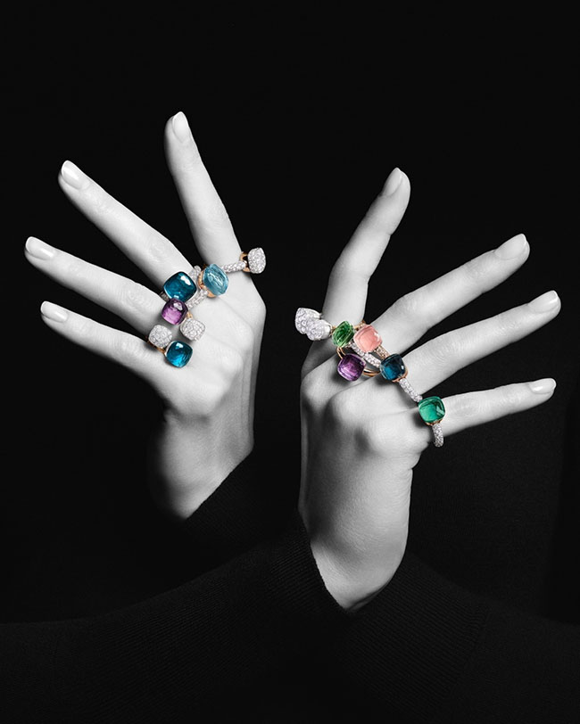 Коллекция Nudo, известная своими «обнаженными» драгоценными камнями, предстает на фоне теней, символизируя чистоту и радость. Структурированные звенья Pentagoni и струящееся золото линий Catene и Iconica воплощают чувственную миланскую энергию. Для тех, кто ценит более личные истории, коллекция Pomellato Together исследует геометрию связи через переплетение розового золота и бриллиантов.