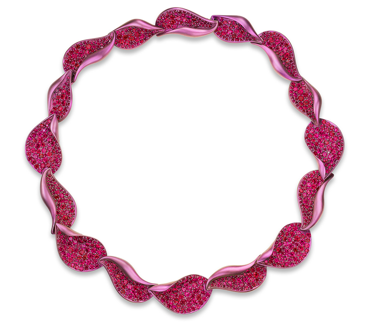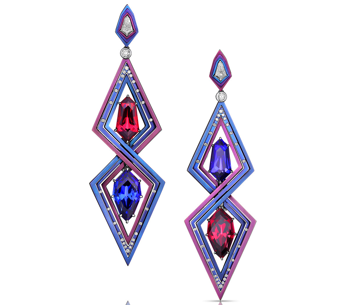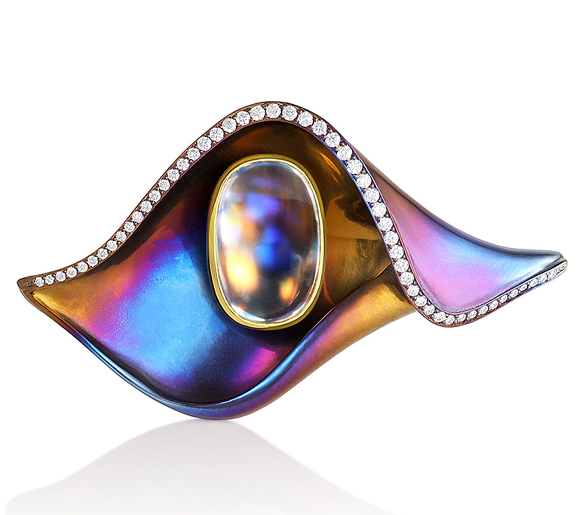 Титан выступает объединяющим материалом всей коллекции: он анодирован в оттенки от пыльно-розовой бронзы до градиентов синего, фиолетового, розового и зелёного, воссоздавая палитру снов Нили.