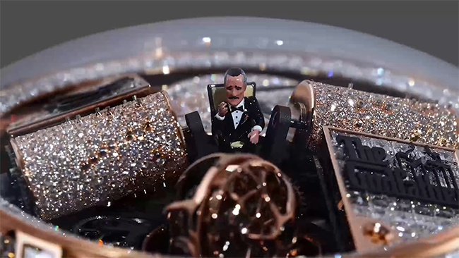 Но истинное волшебство происходит, когда вы нажимаете кнопку в положении "10 часов". Весь механизм – включая трехосевой турбийон, цилиндры музыкальной шкатулки, фигурку Дона Корлеоне и смещенный от центра циферблат – начинает вращаться против часовой стрелки, создавая завораживающее зрелище.
