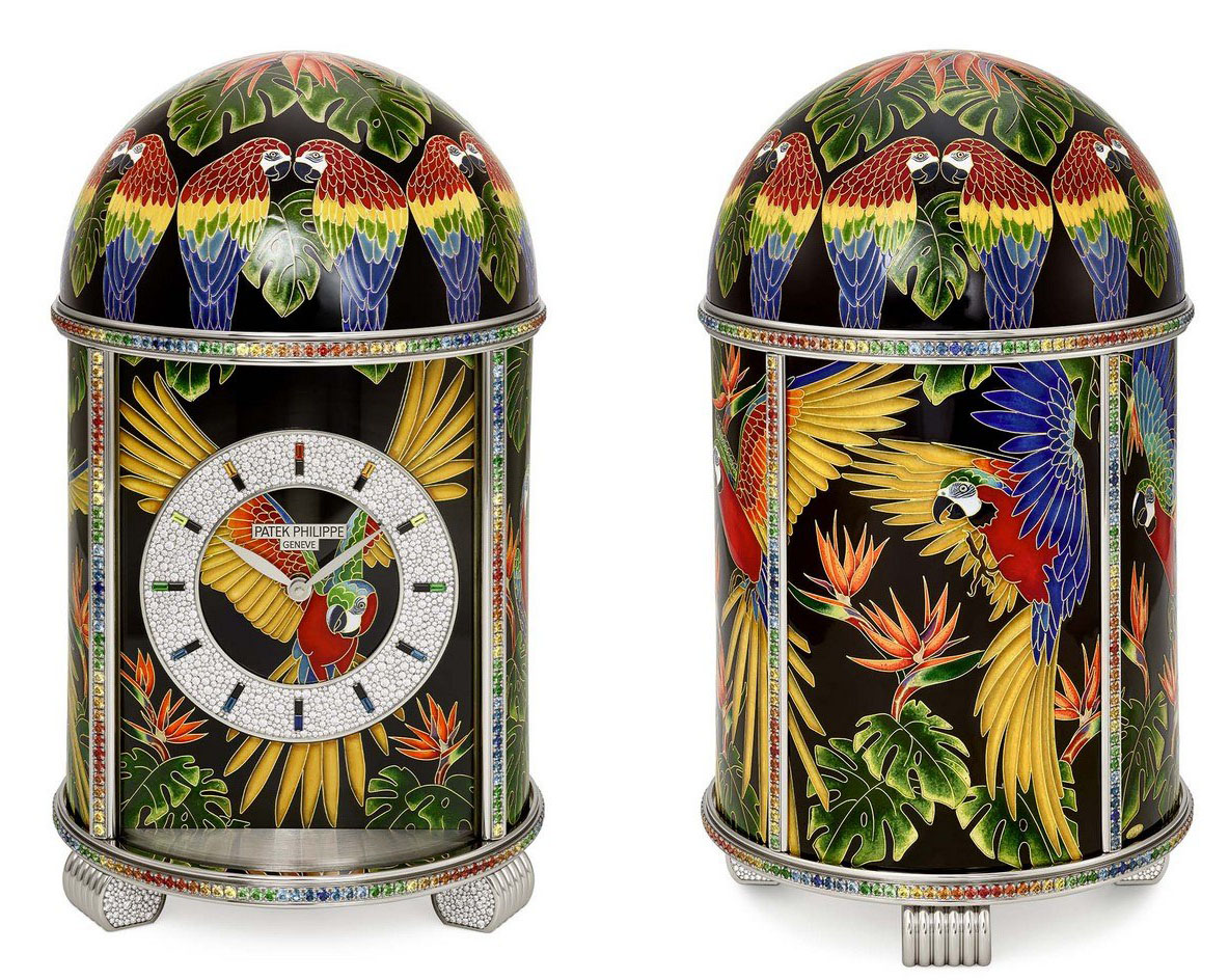 Одними из часов будут уникальные настольные часы Macaws (попугаи ара) в обрамлении амазонского леса. Часы выполнены в технике перегородчатой эмали горячего обжига. Мастера выкладывают рисунок с помощью тончайшей золотой проволоки (почти 21 м) и затем заполняют получившиеся ячейки слоями эмали в несколько заходов. Используется 48 видов и цветов эмали, наносимые за 8-10 сеансов обжига при температуре 800-820°C