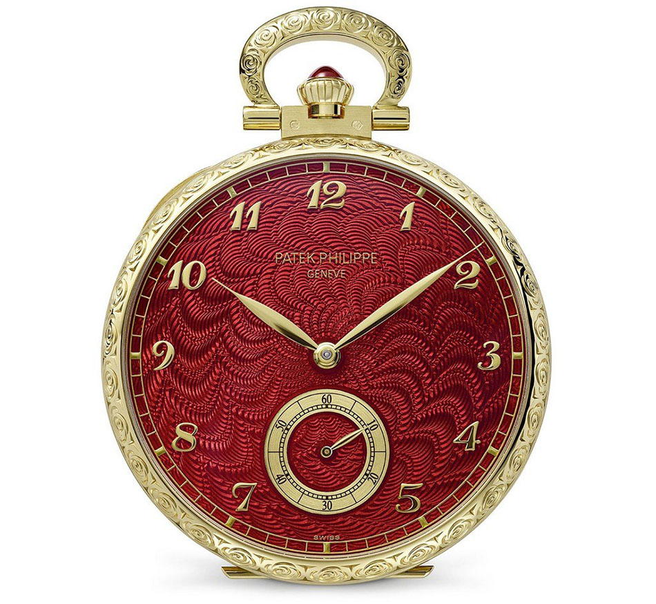 Еще один выставленный уникат – карманные часы Flamenco со своим стендом и изображением танцовщицы в красном платье. В них также использованы разные художественные техники. Циферблат часов выполнен из 18К желтого золота, с гравировкой по корпусу и безелю (цветочные мотивы). Со стороны циферблата использована техника flinqué, с ручным затейливым гильоше, покрытым сверху полупрозрачной рубиновой эмалью, придающей глубину и объемность изображению. Поверх золотой краской напечатаны логотип компании и минутная разметка и использованы золотые накладные цифры Бреге.