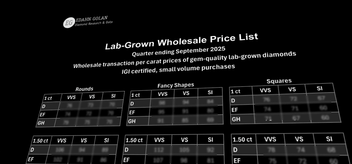 В третьем квартале оптовые цены на лабораторные бриллианты упали на 9% по сравнению с предыдущим кварталом и на 37% в годовом исчислении.