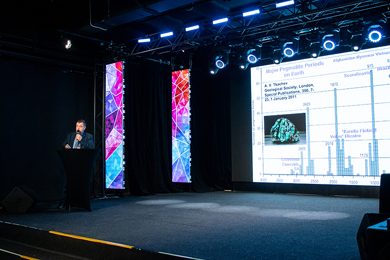 Заведующий геммологической лабораторией ГемЦентра МГУ, Александр Столяревич, представил доклад, освещающий актуальные проблемы, с которыми сталкиваются эксперты в геммологической практике. Особое внимание было уделено презентации более 40 методик диагностики, разработанных за годы существования ГЦ МГУ, включая новейшие протоколы по идентификации синтетических алмазов и определению генезиса цветных драгоценных камней.