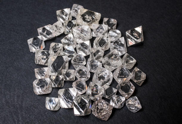 Фотография российских необработанных алмазов предоставлена АЛРОСА.