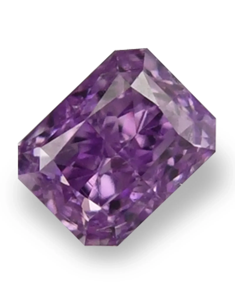 0,07 карата, огранка «радиант», фантазийный, яркий, фиолетовый (предоставлено Leibish)