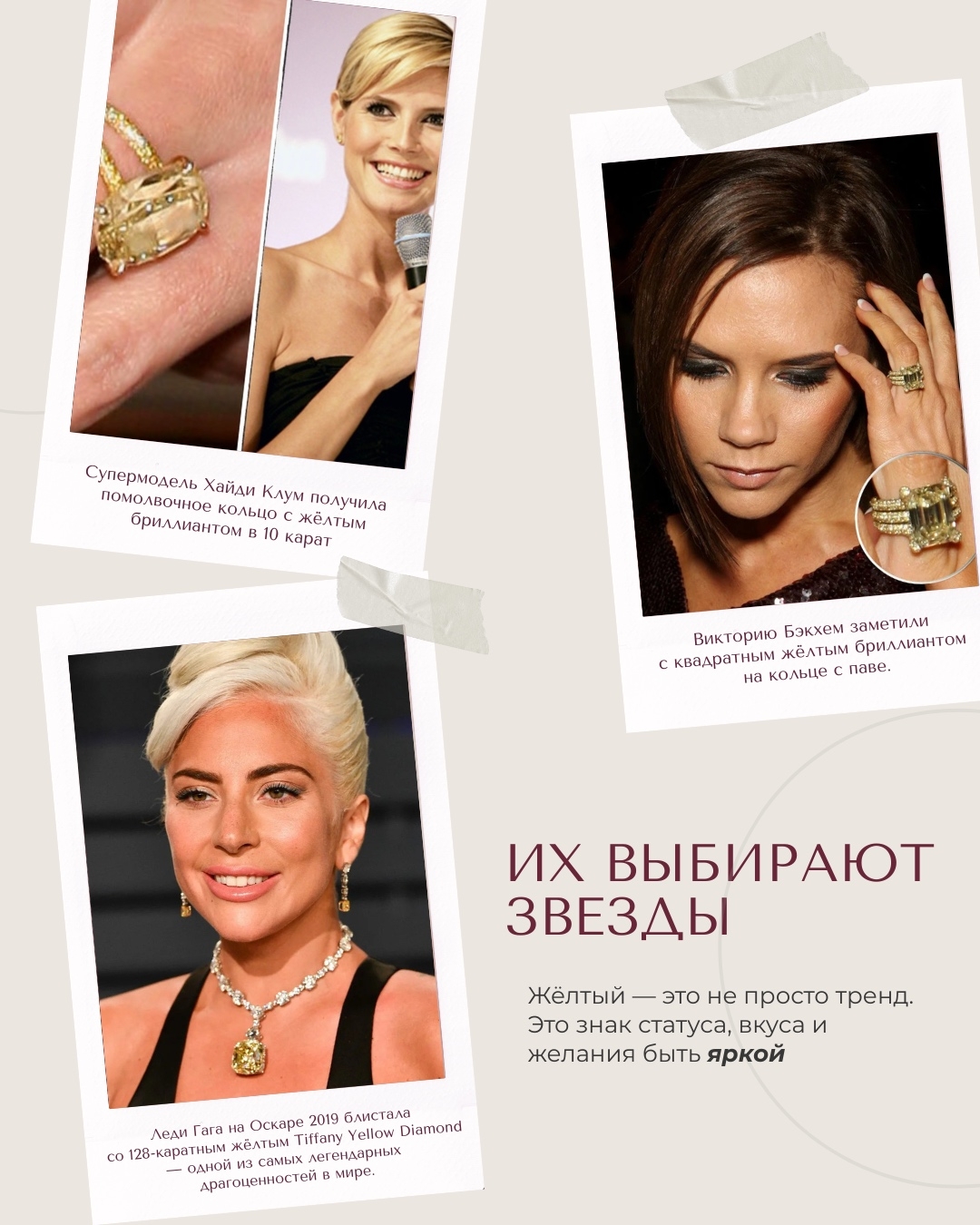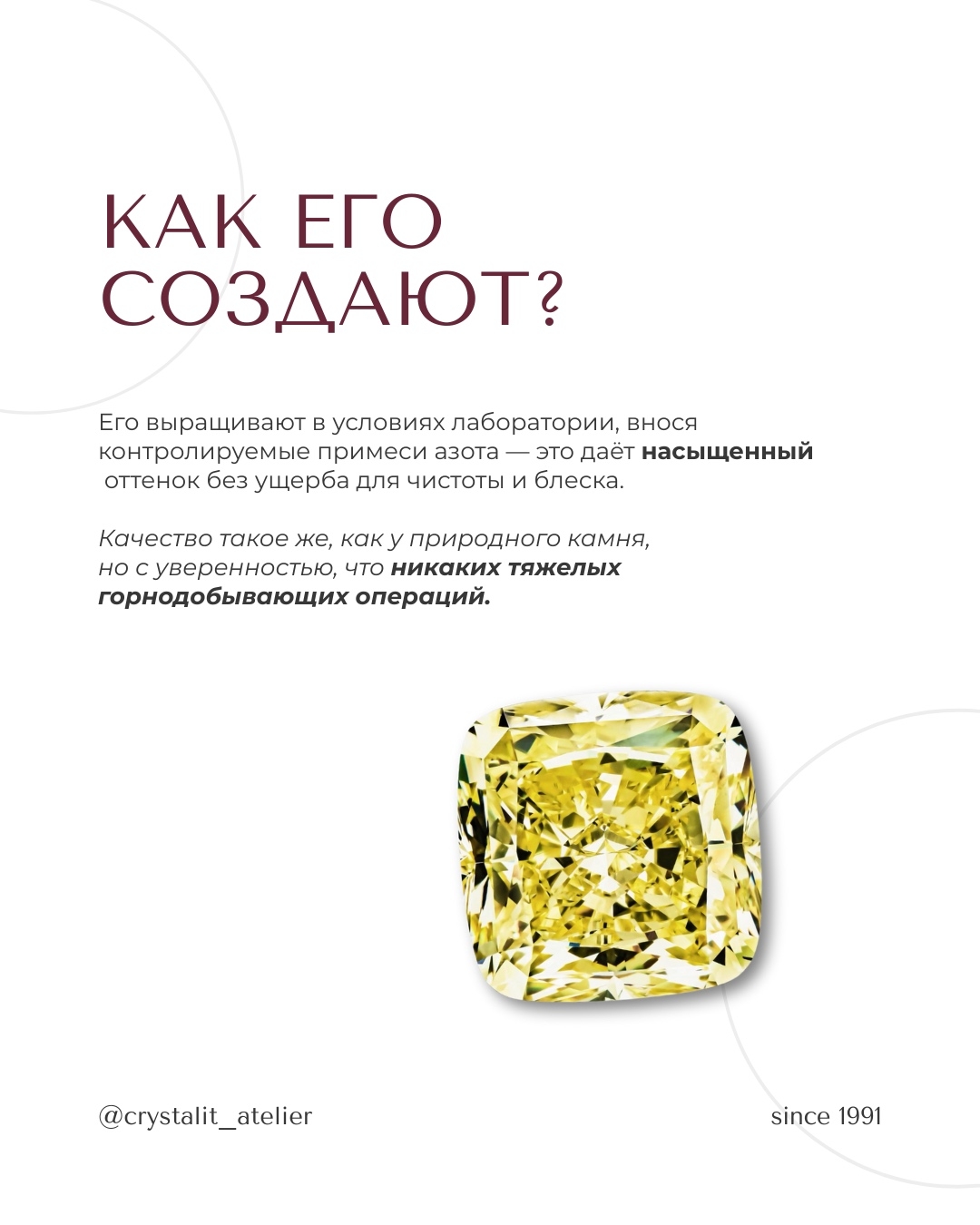Жёлтый бриллиант стремительно становится символом роскоши нового времени. Его выбирают самые смелые, стильные и уверенные — те, кто не боится выделяться и говорить о себе громко, даже без слов.