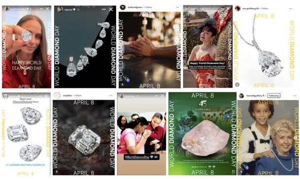 Участникам акции было предложено публиковать фотографии семейных реликвий с бриллиантами или камней, имеющих особое значение в связи с помолвками или годовщинами, в социальных сетях, используя специальный шаблон Всемирного дня алмазов.