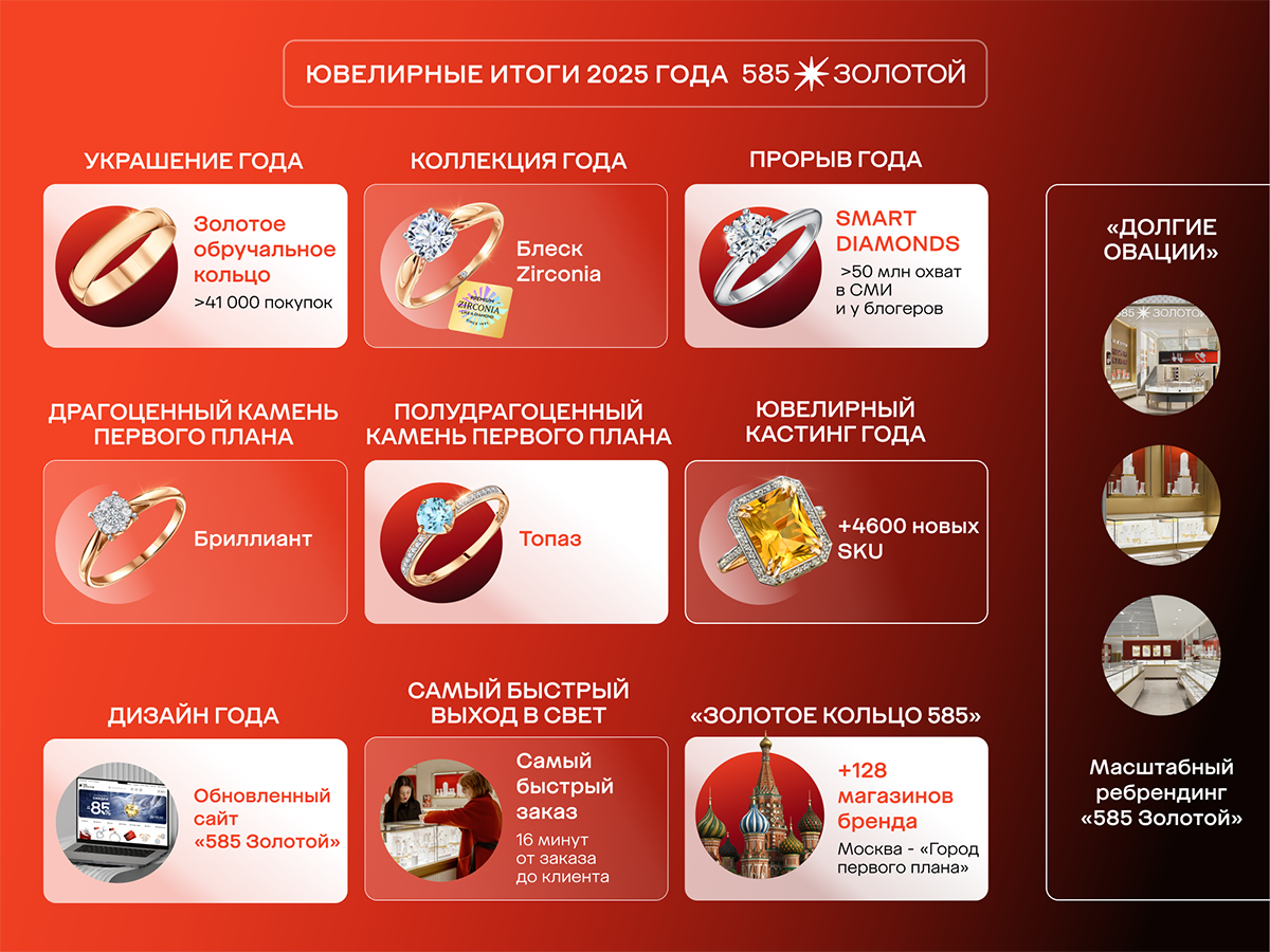 Коммерческие и коммуникационные итоги 2025 года показали: ювелирная отрасль все чаще говорит языком эмоций, характеров, смыслов, а не просто ценами и каратами. Именно этому были посвящены главные изменения и проекты «585 Золотой» в 2025 году, за что и бренд, и клиенты сети отмечены в номинации «Долгие овации». И такое направление коммуникаций и бизнеса становится уверенным ориентиром бренда на 2026 год.