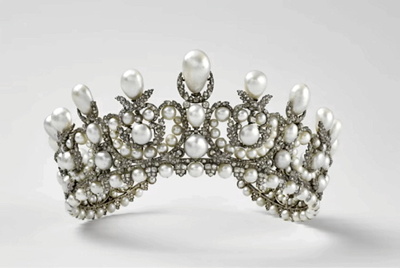 Вероятно, тиара теперь представляет собой не более чем мешочек жемчуга и горстку драгоценных камней. 1998 крошечных бриллиантов, в основном цвета F-G и чистоты VVS1-VS1, общим весом 63,3 карата.