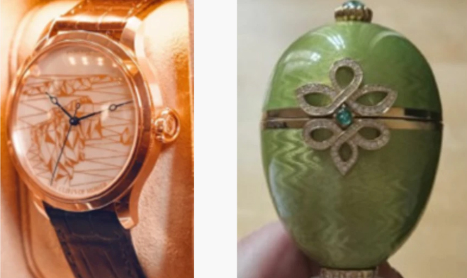 Дорогостоящие изделия, входившие в лимитированную серию, были похищены вечером 7 ноября 2024 года. Яйцо высотой 10 см выполнено в зелено-золотых тонах, часы — из розового золота с коричневым ремешком. Несмотря на приговор, их местонахождение неизвестно, и полиция продолжает поиски.