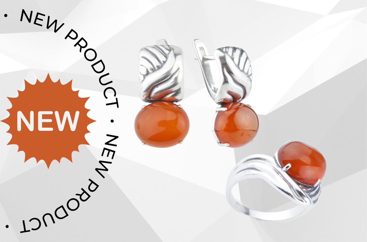 Комплект 10320 — серебро и природные камни: коралл, сердолик, янтарь и другие. Классические круглые вставки среднего размера — простота, которая никогда не выходит из моды.