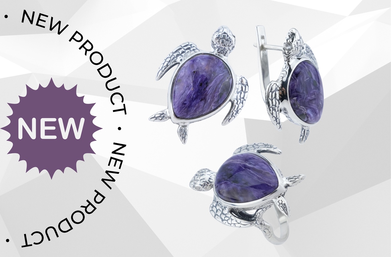 Комплект 10322 — забавные и очаровательные черепашки с лазуритом, родонитом, чароитом и другими натуральными камнями. Прекрасный выбор для путешествий и отпускного настроения!