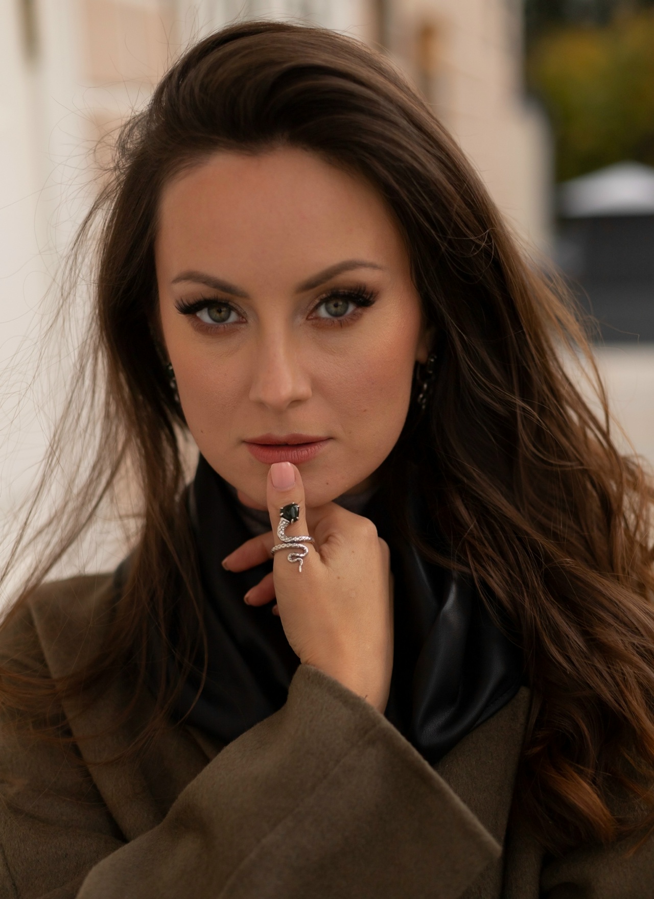 Кольцо — змея с высокой детализацией изящно обвивает камень, создавая элегантный и символичный акцент.