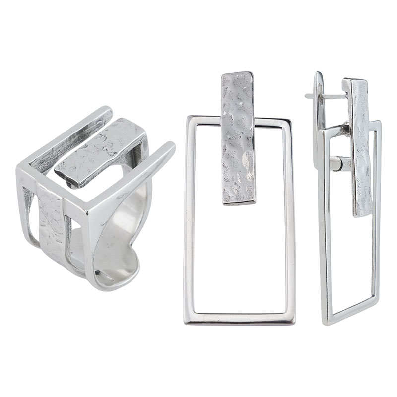 Кольцо и серьги с геометрией прямоугольника — про стиль, уверенность и современный минимализм.
