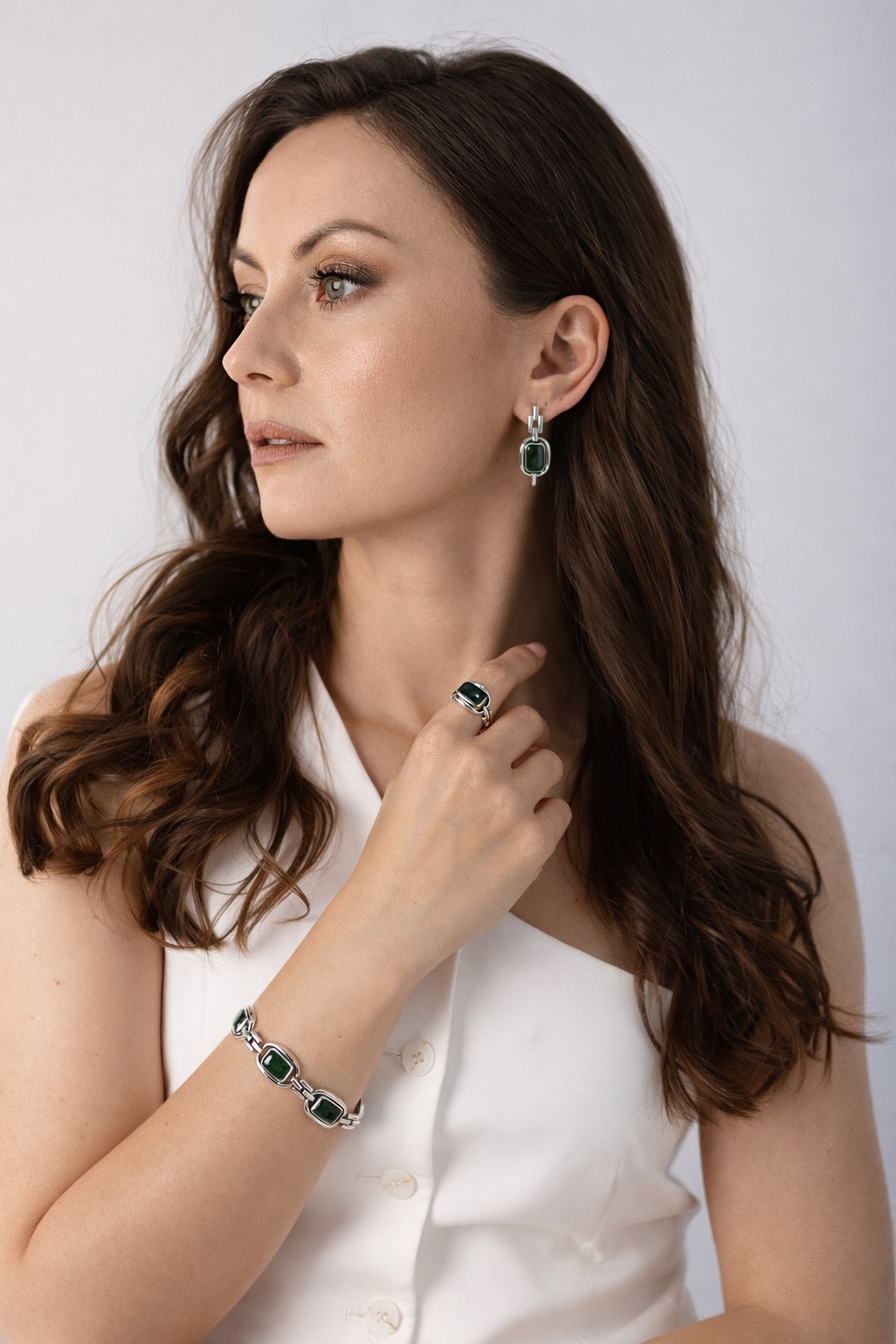 Серебро и натуральные камни — сочетание, которое всегда выглядит благородно и выразительно. Комплект выполнен в едином стиле: лаконичные формы, чистые линии и природная красота вставок. Украшения легко комбинируются между собой и гармонично дополняют как повседневные, так и более нарядные образы.