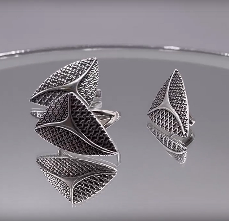 Фактурное изящество: Особое внимание уделено текстуре серебра, создающей игру света и тени, подчеркивающей глубину и объем орнамента. Это придает украшениям особую тактильность и визуальную привлекательность.