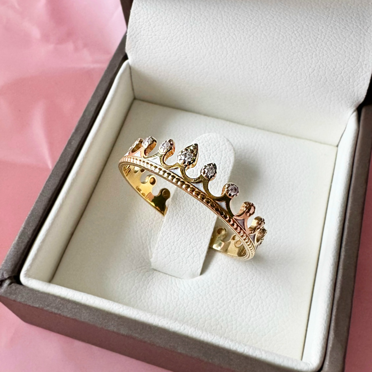 Кольцо «Принцесса на горошине» - для тех, кто тонко чувствует и выглядит всегда по-королевски! Маленькая корона с фианитами создана нашими мастерами, чтобы напоминать: ваша нежность заслуживает самого драгоценного обрамления.
