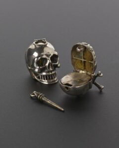 Некоторые модели предлагали смелый подход. В "винегрете" в форме черепа, хранящемся в Музее науки в Лондоне четыре отделения содержат различные эссенции; снаружи мотив напоминает о хрупкости жизни и силе духов:)