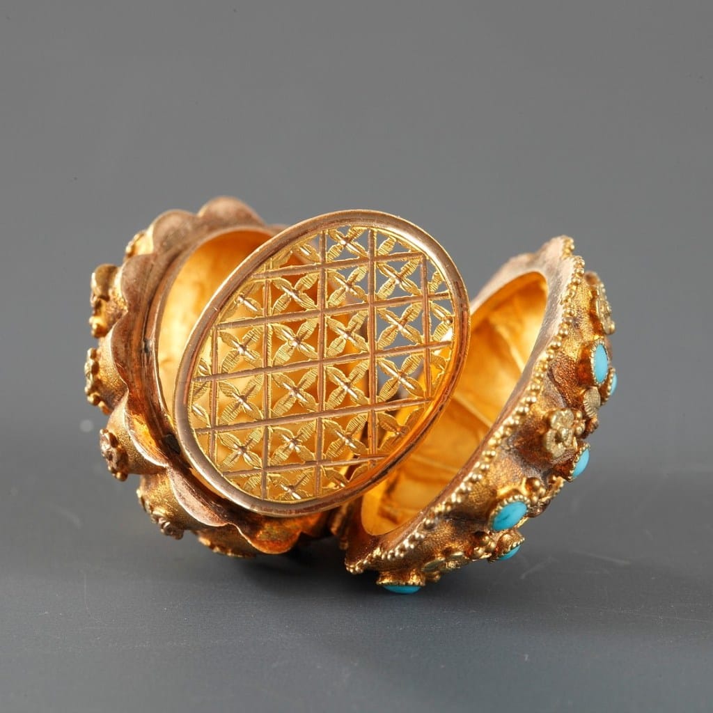 Компактный, он содержал губку, пропитанную лавандовым уксусом. Крышка с мелкими отверстиями распространяла аромат. Пользоваться было просто: открыть, вдохнуть и восстановить силы. Функциональность быстро дополнилась эстетикой. Мастера работали с золотом и серебром. Формы стали разнообразнее: шкатулки, кошельки, миниатюрные животные. Винегрет превратился в браслеты, кольца или подвески.