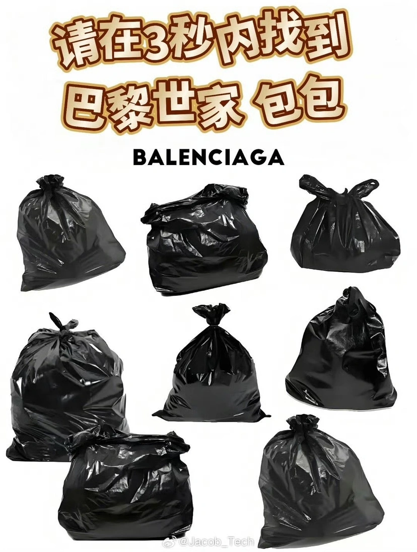 Вирусное фото мусорного мешка Balenciaga рядом с настоящими мусорными мешками. Изображение: Weibo