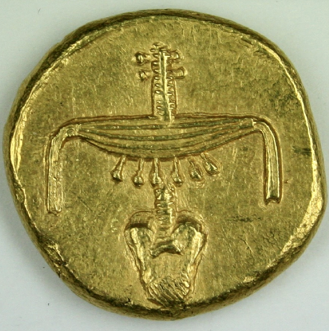 Золотая монета Нектанебо II, Поздний период, Египет, ок. 360-343 гг. до н.э.