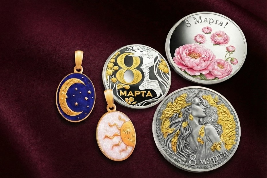 Мы предлагаем как универсальный дизайн в тематике 8 Марта, с весенними мотивами, женскими образами и аккуратной символикой, так и более адресный вариант. Например, монеты со знаками зодиака, которые позволяют добавить персонализацию, не выходя за рамки корпоративного этикета.