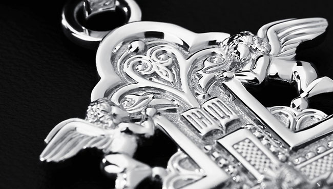 Платина — металл, символизирующий чистоту и вечность. Он не тускнеет и не окисляется с течением времени, что делает его идеальным для нательного креста — украшения, которое носят каждый день. Работа с платиной технически сложна: температура её плавления составляет 1773°C, а металл остаётся в жидком состоянии лишь несколько секунд. Для коллекции «Семь реликвий Великого Новгорода», содержащей множество мелких деталей и рельефных элементов, это означало особый вызов. Опыт Platinum Lab, работающей исключительно с платиной с 2007 года, позволил успешно реализовать данный проект.