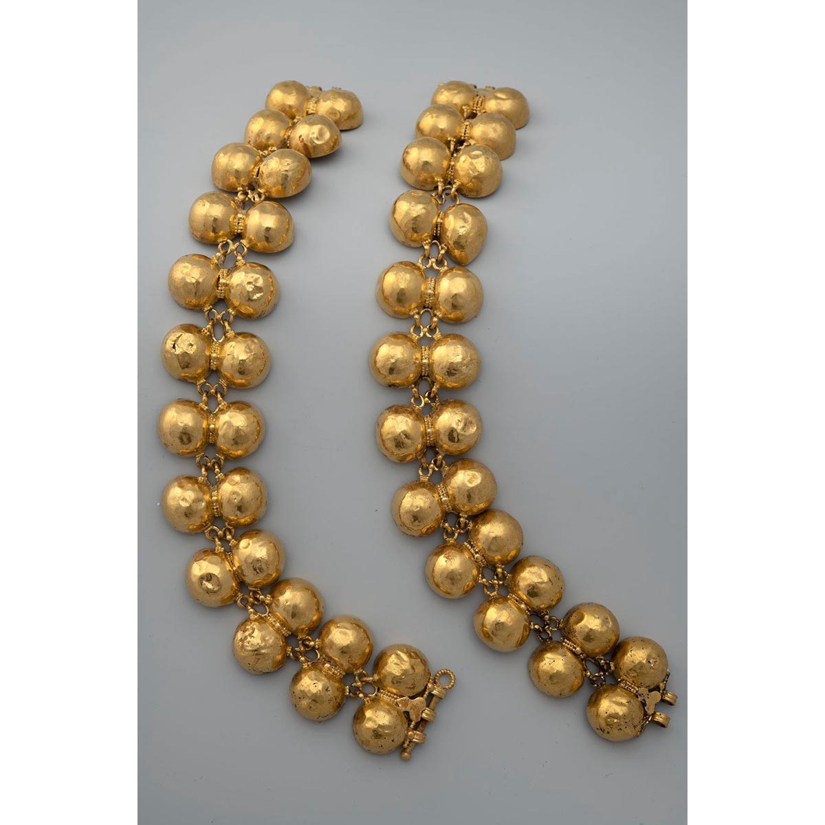 Другой распространённый тип — браслет, собранный из полусферических элементов (granulated hemispheres), соединённых цепочными звеньями, которые выполняли роль шарниров. Найдены экземпляры как из цельного золота, так и с позолотой.