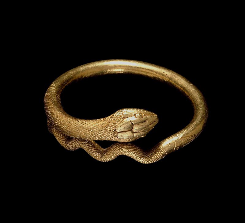 Золотой браслет в форме свернувшейся змеи, римский, Помпеи, I век н.э. (Британский музей)