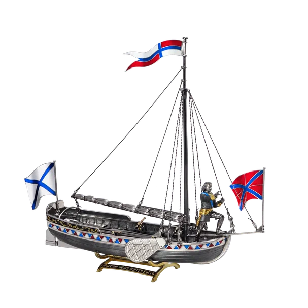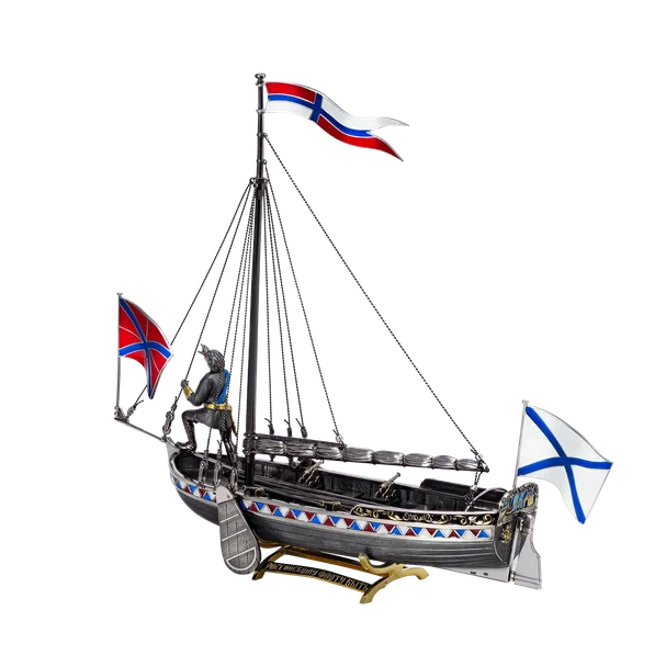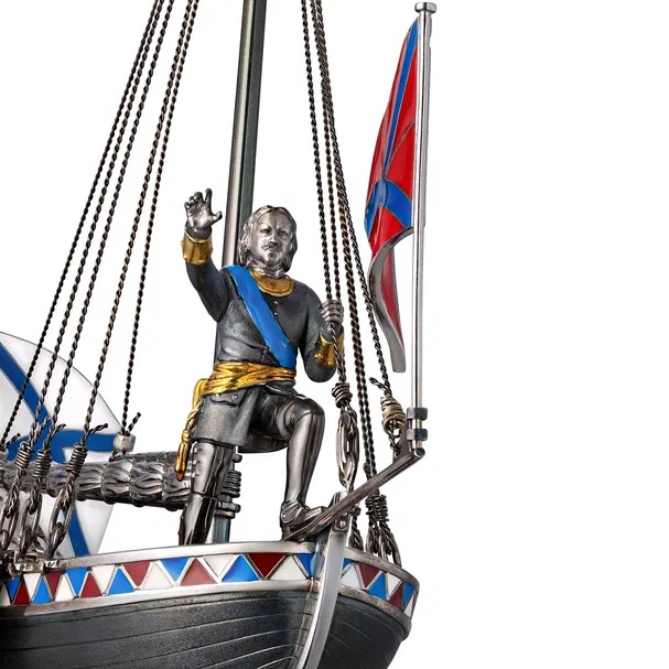 «С момента создания этого ювелирного изделия великим Павлом Овчинниковым прошло уже 150 лет, и мы подумали, что могли бы создать не копию, не реплику, а некоторую свою версию, свой вариант видения, – рассказывает о работе генеральный директор Ювелирного дома RODIS Алексей Минаков. – В том числе и с учетом тех новых технологий, которых не было 150 лет назад. Например, мы используем нанесение черного родия и других материалов с помощью гальванического покрытия, чего не было в те времена, различные виды эмали разных цветов, различную фактуру – полированную, фактурованную, матованную. При этом мы, разумеется, изучали исторические источники и стремились максимально приблизиться к самому изначальному предмету, включая количество скамеек для гребцов, количество вёсел, расположение пушек и так далее. Русское ювелирное искусство в целом основано на том, что каждое изделие – это как маленький спектакль, или маленький роман, оно какой-то смысл в себе содержит, о чем-то рассказывает, имеет какую-то историю, идею. Это не просто камень красивой формы в красивом обрамлении».