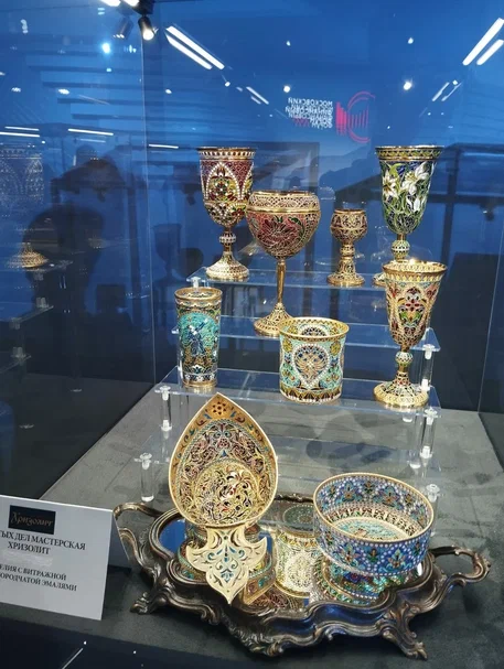Выставка, проходившая при поддержке Департамента государственного регулирования отрасли драгоценных металлов и драгоценных камней Минфина России, знакомила гостей форума с высокохудожественными изделиями ведущих российских ювелирных брендов, выполненных в национальных традициях русского ювелирного искусства. Свои работы представили Ювелирный дом CHAMOVSKIKH, Ювелирный дом RODIS, Ювелирный дом «Русская Сказка», Золотых дел мастерская «Хризолит», Творческая мастерская Николая Балмасова, художник-ювелир Алексей Донцов. Кроме того, были представлен совместный проект художника-ювелира Ильгиза Фазулзянова и АНО «Центр сохранения и развития авторского ювелирного искусства» «Наследие», а также дипломные работы учеников Политехнического колледжа имени П.А. Овчинникова.