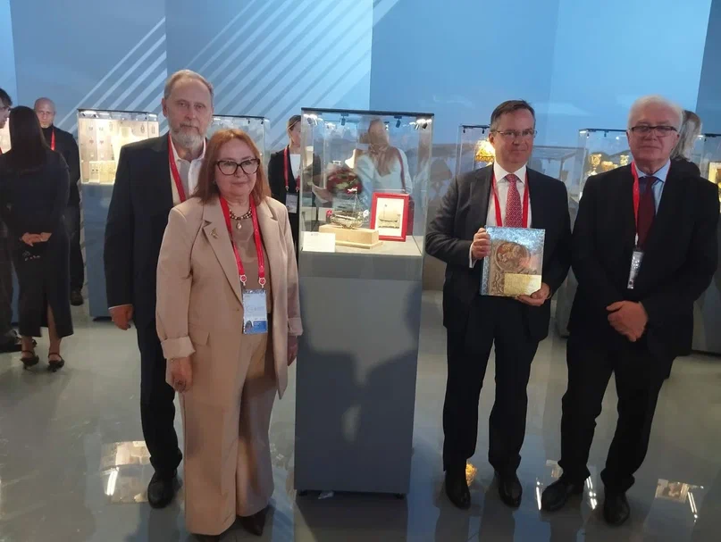 Выставку «Национальный стиль в ювелирном искусстве» и церемонию передачи «Ботика Петра I» Историческому музею посетили: заместитель Министра финансов РФ Алексей Моисеев, руководитель Федеральной пробирной палаты Юрий Зубарев, руководитель Гохрана России Андрей Юрин, генеральный директор АО «Гознак» Аркадий Трачук, директор Департамента государственного регулирования отрасли драгоценных металлов и драгоценных камней Министерства финансов Юлия Гончаренко, президент Торгово-промышленной палаты РФ Сергей Катырин. Участники финансового форума проявили большой интерес к национальным традициям, воплощенным в ювелирном искусстве и представленным в экспозиции.