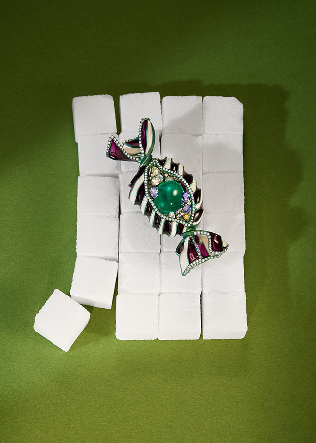 Продолжая свою успешную коллекцию «Something Sweet», А. Вин Сиу также представит очаровательную брошь в форме конфеты, украшенную колумбийским изумрудом: