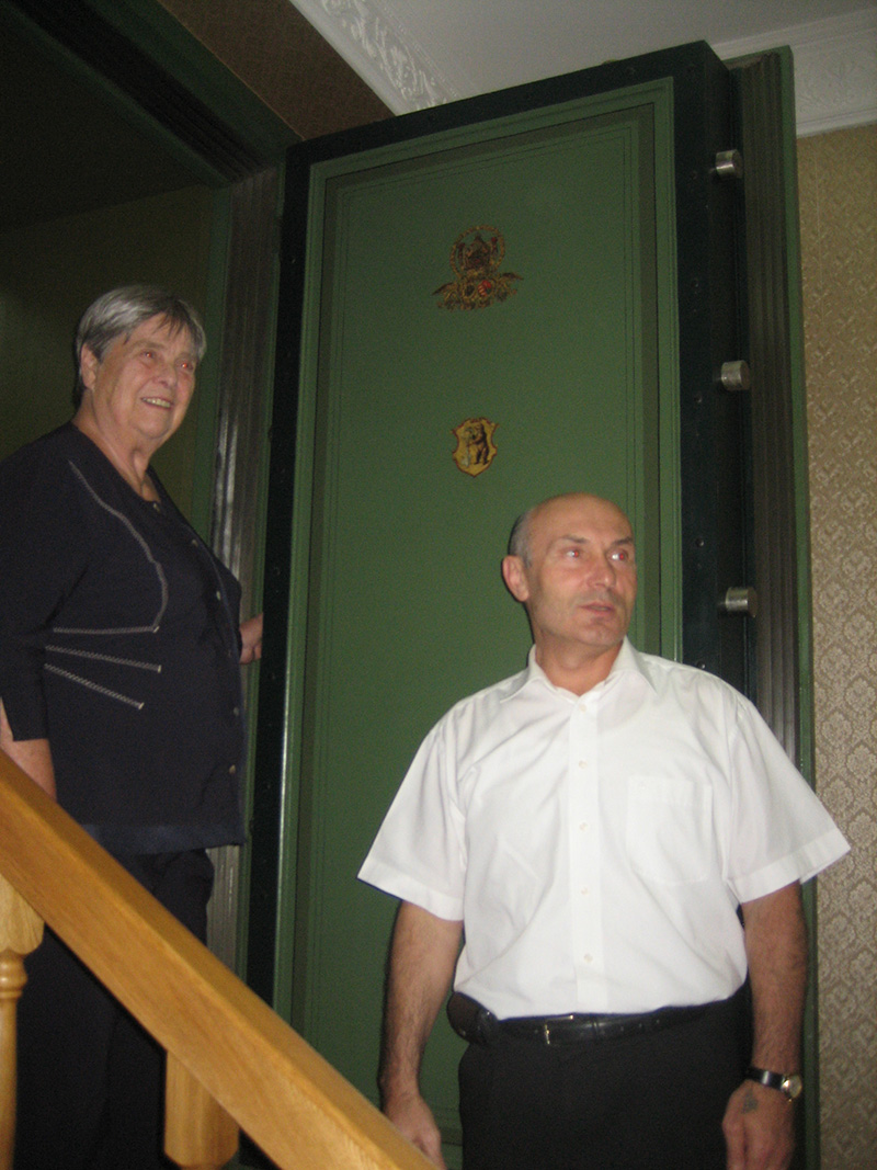 татьяна Федоровна и Александр Сергеевич Горыня на Большой Морской, 24, в бывшем здании ювелирной фирмы Фаберже осматривают уникальный бронированный сейф, в котором хранились главные ценности