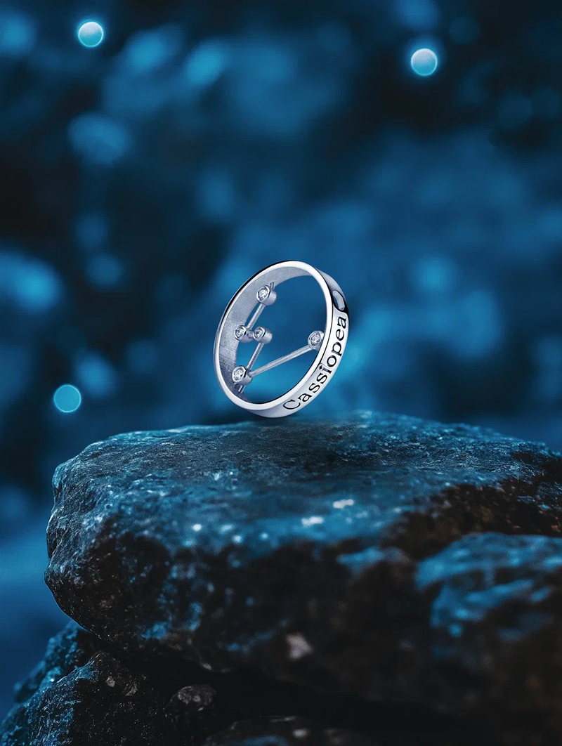 Кулон из знаковой коллекции Дома под названием «I`m Cassiopea» выполнен в виде буквы W, отсылающей к форме созвездия Кассиопея, заключенной в круг. Он создан из белого золота 750 пробы с инкрустацией пяти природных бриллиантов круглой огранки. Минималистичный дизайн кулона легко вписывается в любой образ.