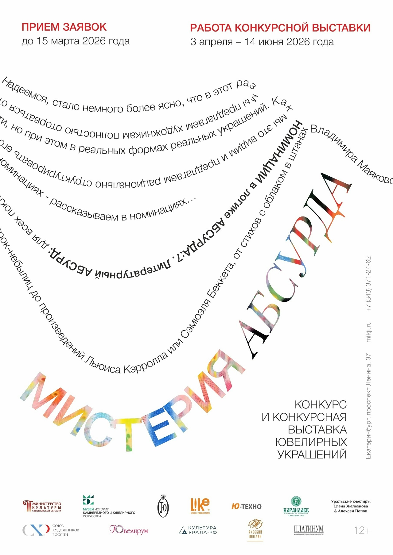 Такого в наших конкурсах еще не было! В этой номинации могут принять участие все желающие - даже не ювелиры. А вообще, мы ждем, что выставку придут смотреть со знанием абсурдного и ювелирного дела самые разные люди, в том числе те, кто умеет складывать буквы в слова, а слова в предложения, а предложения в мысли, анализ и дарить своим словом мотивацию, вдохновение или новые смыслы и художникам-участникам, и тем, кому только предстоит увидеть эту переворачивающую сознание выставку. До 31 мая 2026 года предлагаем высылать свои критические и аналитические эссе и рецензии о конкурсной выставке Мистерия АБСУРДА от 1000 до 5000 знаков на музейную почту mikji@mail.ru