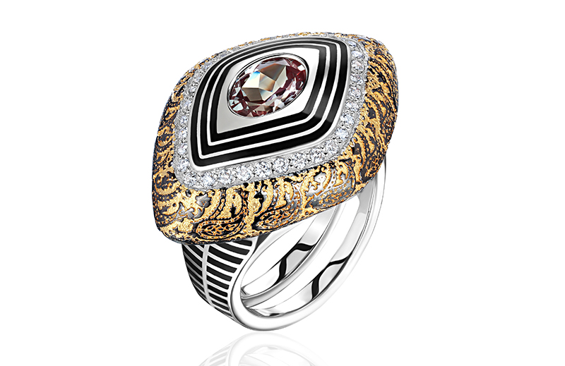 Vladimir Goncharov Jewellery. Кольцо "Запад-Восток". Белое золото, эмаль, александрит, бриллианты