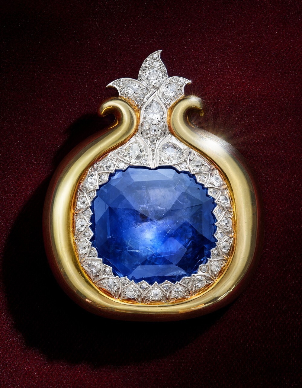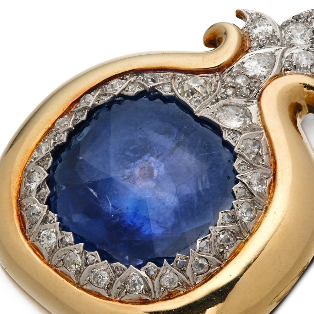 Еще одна брошь Grenade с сапфировым бриллиантом от французского ювелира Рене Бойвена, стилизованная под гранат, когда-то принадлежала французской светской львице Дейзи Феллоуз: