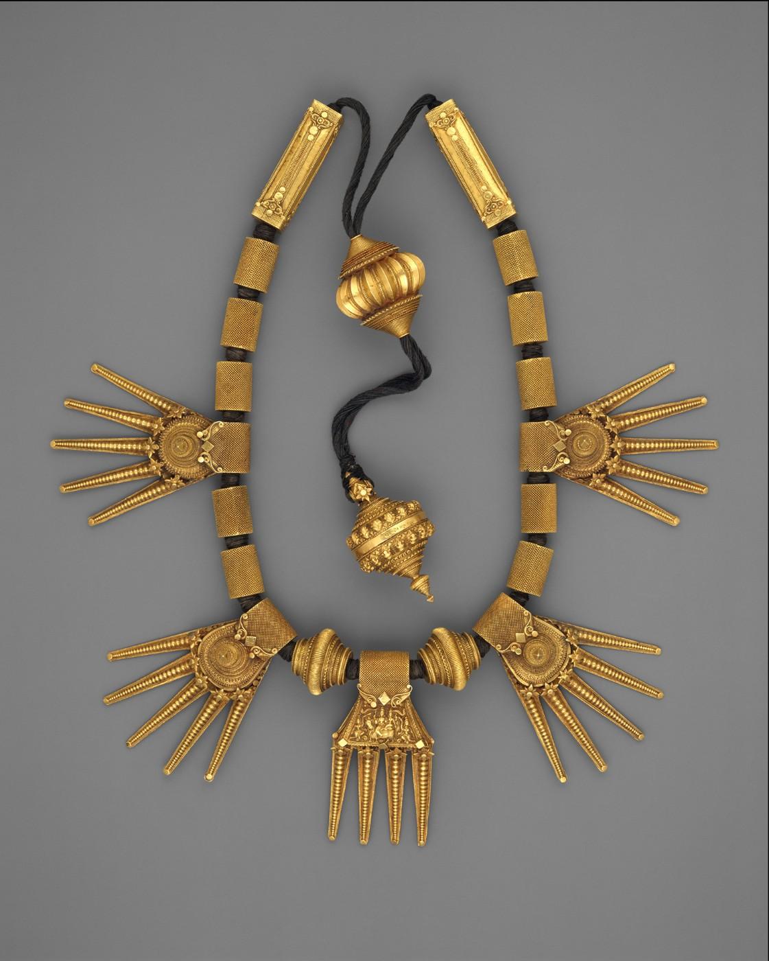 Свадебное ожерелье (тали), Индия, конец 19 века. Золото, нанизанное на черную нить