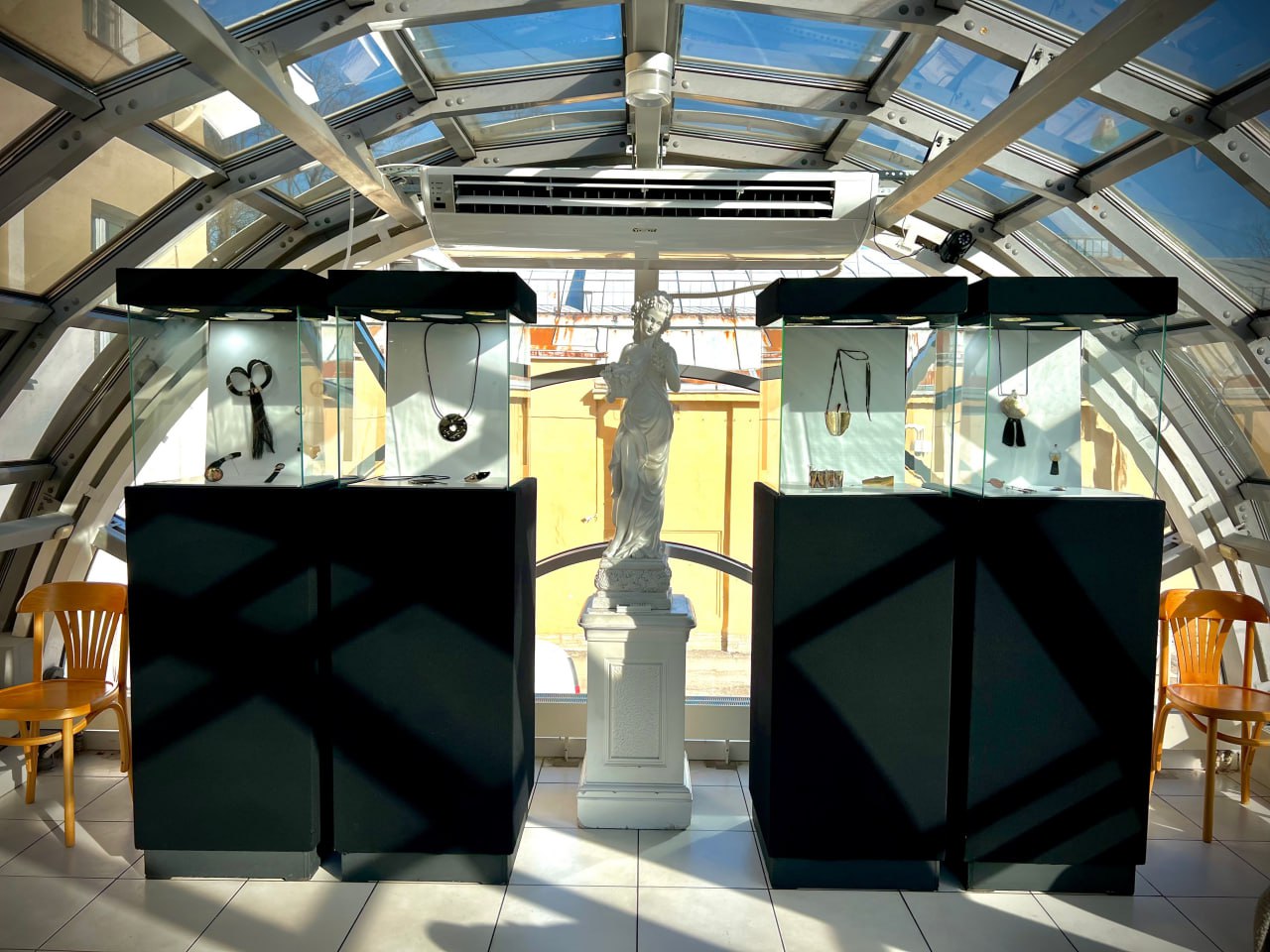 У посетителей кафе «Оранжерея» есть прекрасная возможность в одном пространстве познакомиться с творчеством сразу трёх ярких представителей петербургской школы ювелирного искусства — Геннадия, Натальи и Дениса Быковых.