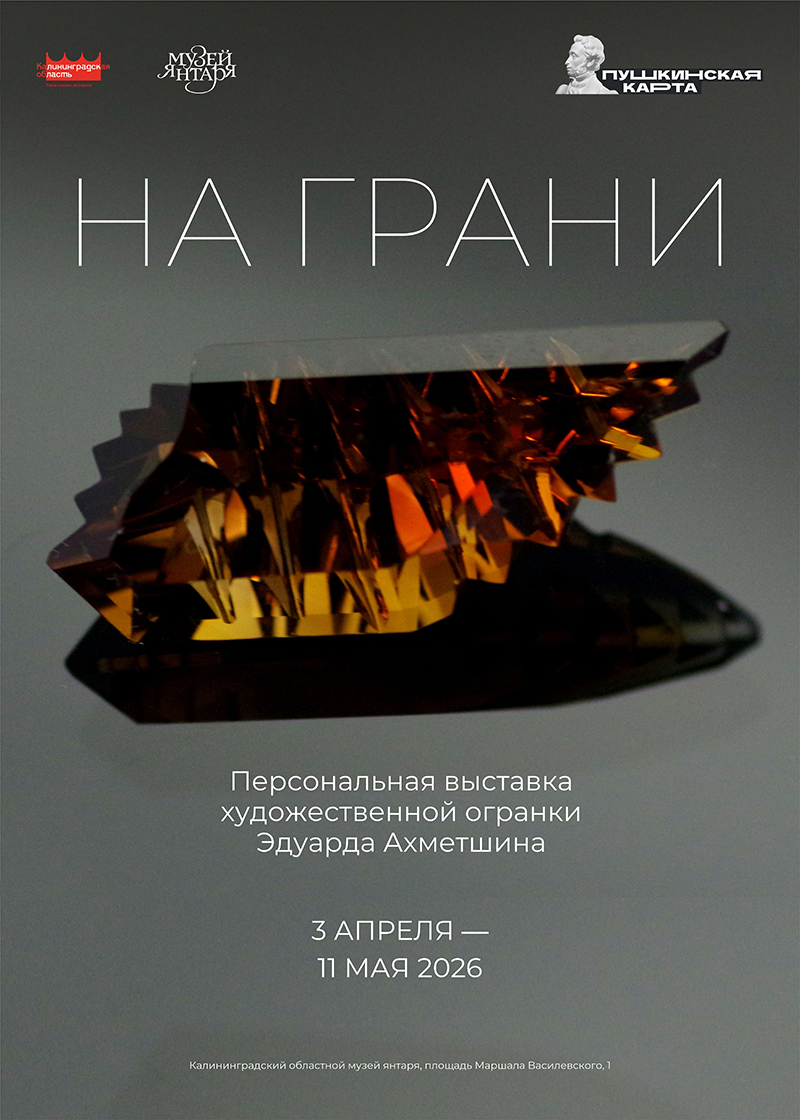 3 апреля в Музее янтаря откроется персональная выставка Эдуарда Ахметшина – мастера художественной огранки. Экспозиция «На грани» демонстрирует 27-летний творческий путь автора и развитие его художественного вкуса в «совершенствовании» минералов. На выставке будут представлены кунциты, бериллы, аметисты, морганиты, горный хрусталь, цитрины и топазы классического, комбинированного и художественного типов гранильного искусства.