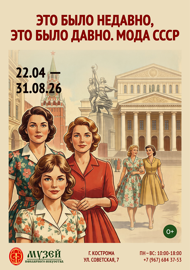 Выставка «Это было недавно, это было давно. Мода СССР» будет работать до 31 августа 2026 года по адресу: г. Кострома, ул. Советская, д.7.