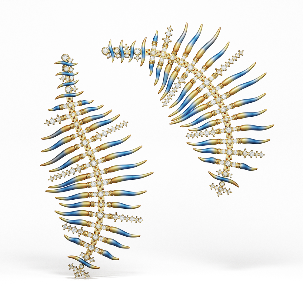 Себастьян Плах стал победителем в категории «Молодые (до 30 лет)» со своими серьгами Guacamaya. Себастьян описывает их как самовыражение, вдохновленное экзотическими мелодиями. Серьги передают яркий дух Колумбии, создавая поэтическую синергию между плавными движениями традиционных колумбийских танцев и переливающимися перьями попугая ара. Их скульптурный ритм воспевает свободу, самобытность и силу цвета как эмоционального языка. Это дань уважения латинскому искусству и радости выражения души через движение.