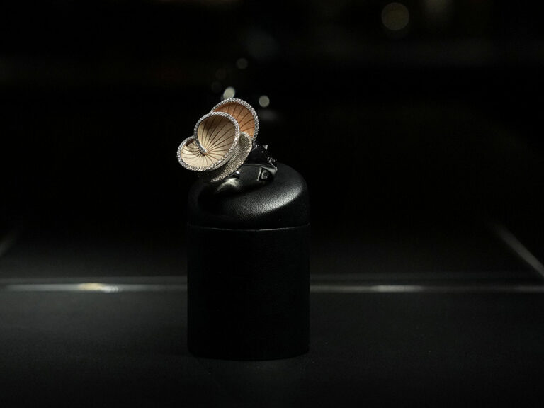 Компания D'Orica продемонстрировала мастерство в обработке золота, представив колье Elv Torchon 0141. Это изделие воспроизводит двойную спираль ДНК, становясь образом существования: спиральные формы, воспевающие жизнь, вечно возрождающуюся из самой себя. Линия украшений отдает дань жизни, истокам и идентичности. Внутри этих спиральных образов разворачивается бесконечное трехмерное взаимодействие, воплощая красоту регенеративной силы и тайну непрерывности жизни.