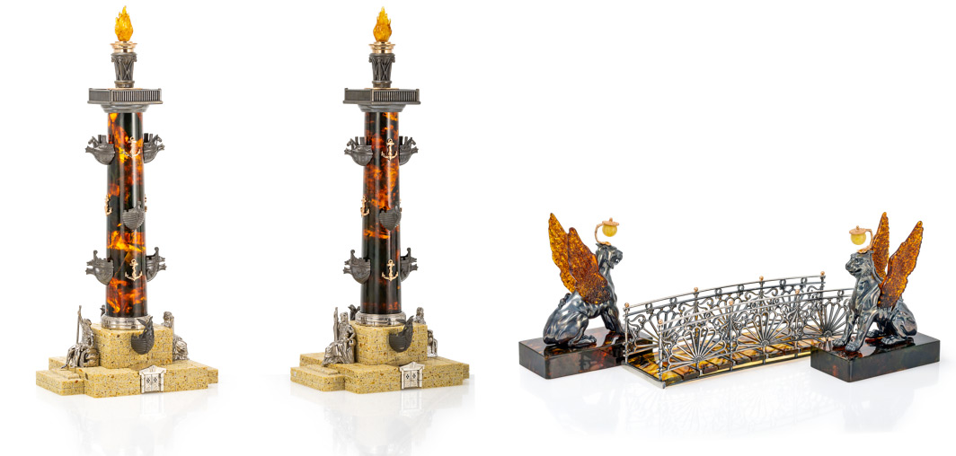 Ювелирные сувениры «Ростральные колонны» и «Банковский мост и скульптуры грифонов»