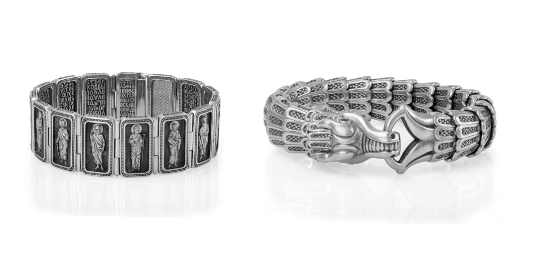 Браслеты из платины «12 Апостолов» и «Дракон»