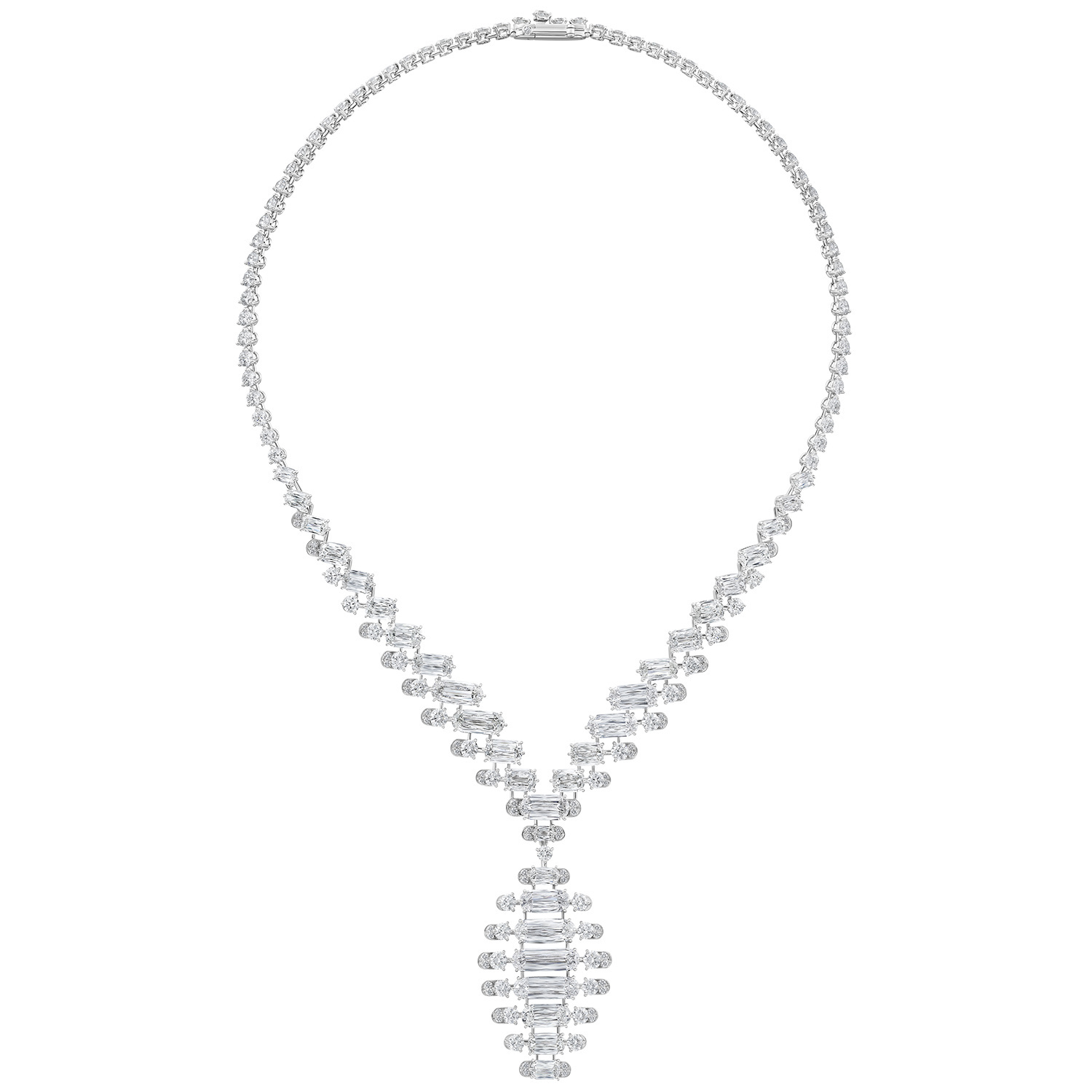 Платиновое колье Splendea превращает чистые бесцветные бриллианты в трехмерный, струящийся водопад света — дизайнеры используют платину для создания шарнирной, ажурной конструкции, украшенной бриллиантами огранки "подушка" и круглыми, выполненными на заказ. Мерцающий блеск бриллиантов ниспадает по шее, словно непрерывная волна. Гармонично подобранная чистота и огранка бриллиантов, а также почти "невидимая" закрепка демонстрируют мастерство бренда в ювелирном деле.